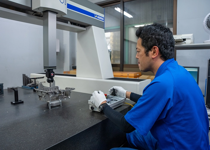 三次元測定機や各種検査機器を使い、鋳造・加工品の寸法や外観、機能を検査。製品の品質を保証する重要な業務です。